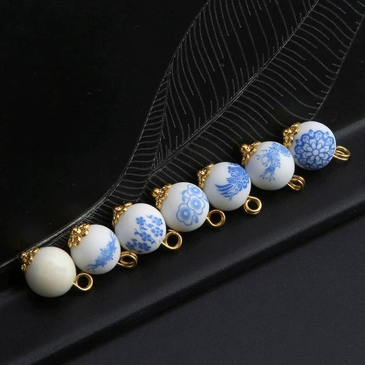 3249★ Ceramic button beads, national style retro cheongsam Hanfu Tang suit shirt, disc button versatile decorative small button blue and white porcelain