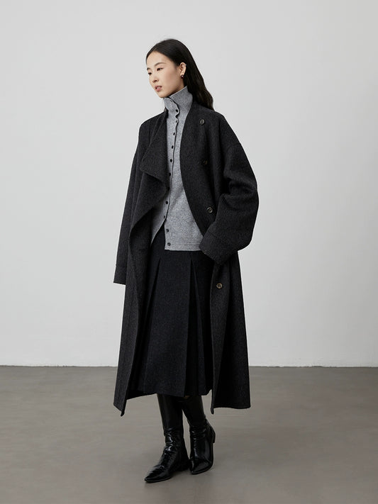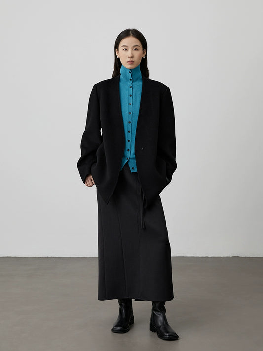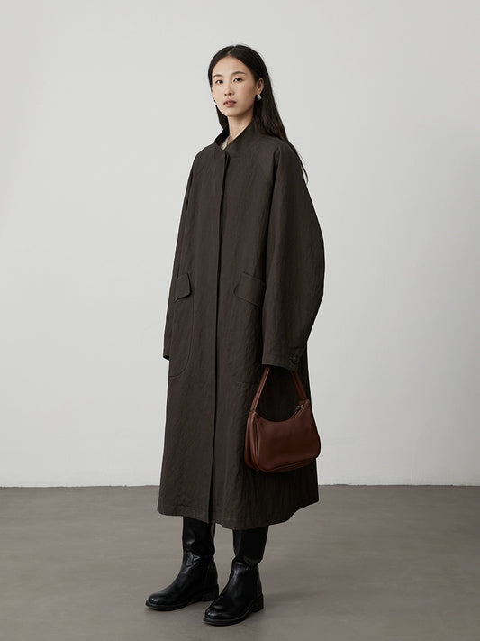 [Urban Shepherd Tour] CAREMIND Chic Denim Green Collarless Windbreaker Jacket Medium and Long Temperament Coat