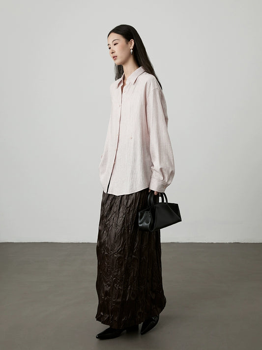 [Wandering the earth] CAREMIND chic brown-red pleated texture skirt niche versatile design long dress