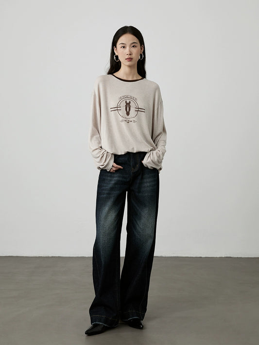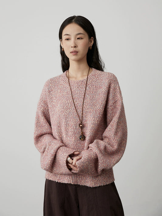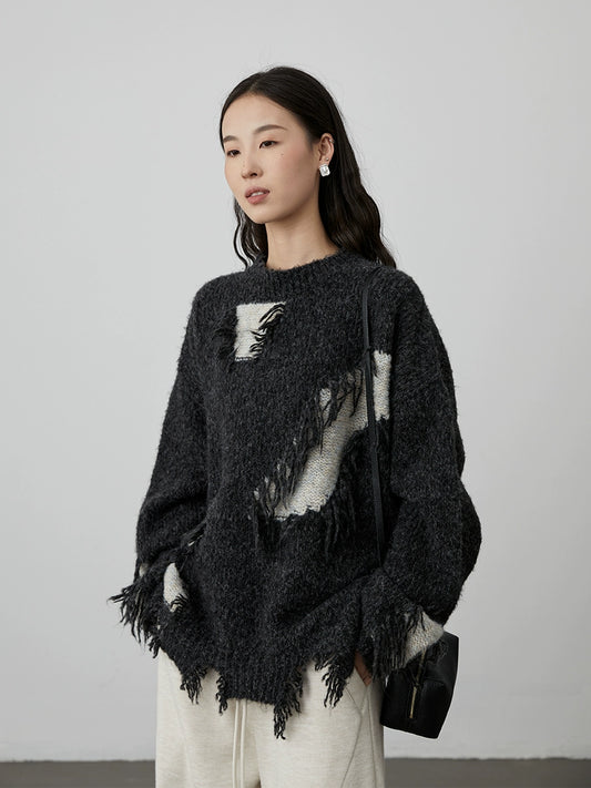 [Wandering Moon Series/Pullover Sweater] CAREMIND dark gray loose round neck knitted top for outer wear