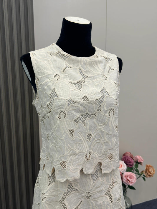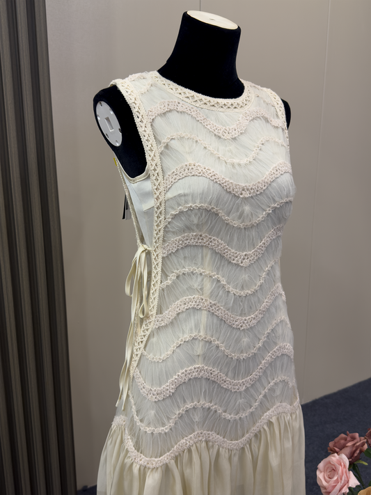 8031★ French high-end embroidery hollow splicing sleeveless dress women's summer design temperament short skirt