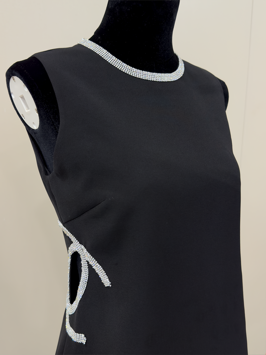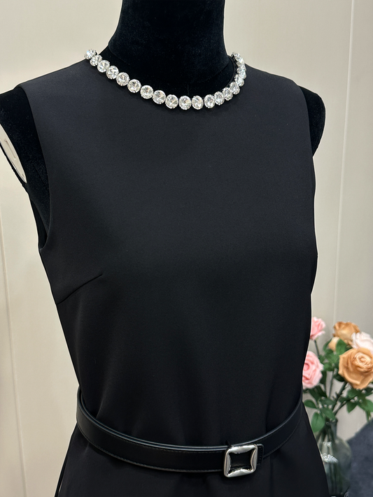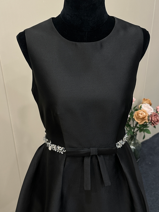 8013★ New Qianjinfeng Heavy Industry handmade fixed diamond bow high-end waist black sleeveless dress
