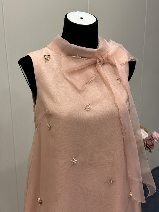 8024★ Qianjin Xiaoxiangfeng dress heavy industry bead collar waist temperament dress sleeveless vest skirt women
