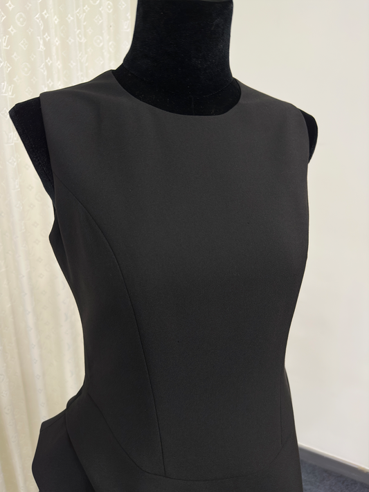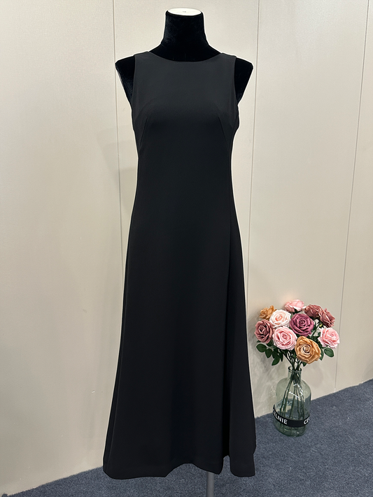 8017★ New simple commuter sleeveless high waist long dress slim round neck slim dress backless small black dress
