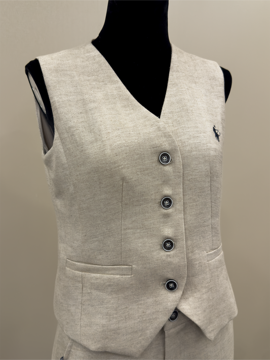8026★ Lao Qian Fengyuan linen V-neck vest set femininity relaxation with silk scarf shorts two-piece set
