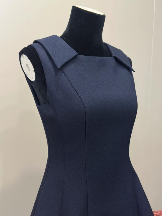 8030★ Qianjin Wind MIU Department High-end navy blue mesh stitching sleeveless dress puffy skirt women's summer