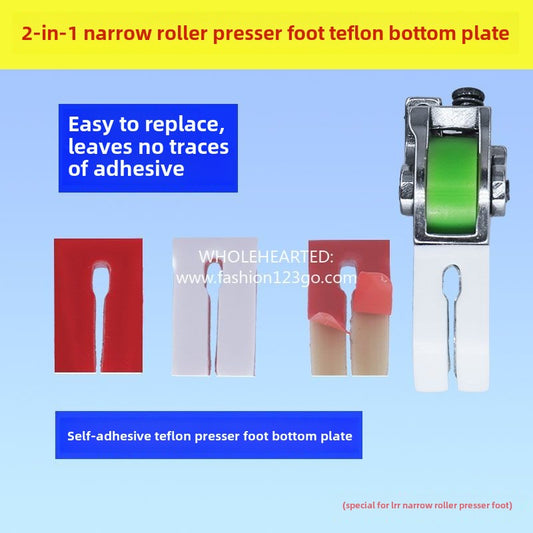 1329★ 2-in-1 narrow roller presser foot Teflon baseplate smooth wear-resistant self-adhesive without leaving marks