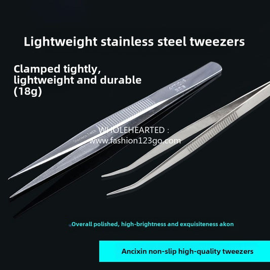 1223★ Refined quality mirror polished lightweight stainless steel tweezers, tweezers non-slip straight head clothing factory