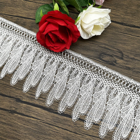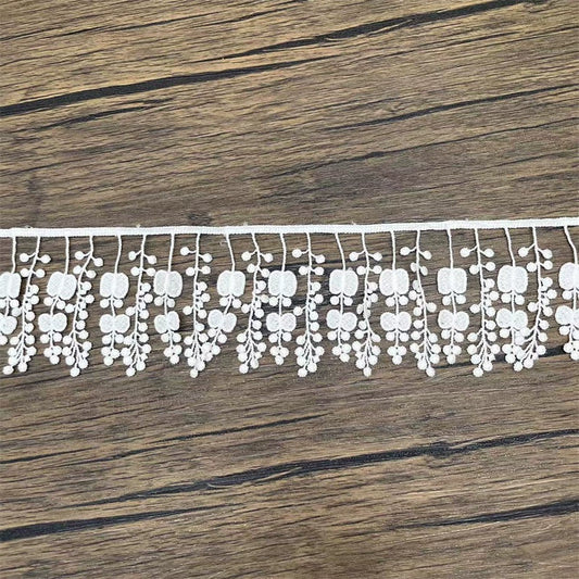 3673 Exquisitos accesorios de encaje bordado de seda de leche con flecos, faldas de ropa hechas a mano, cortinas, accesorios textiles para el hogar