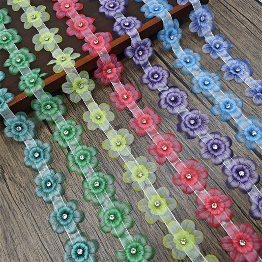 3559★ Ancho 5 cm Color Organza Cambio gradual de color Doble uña Diamantes de imitación Encaje tridimensional Hecho a mano DIY Accesorios decorativos de ropa