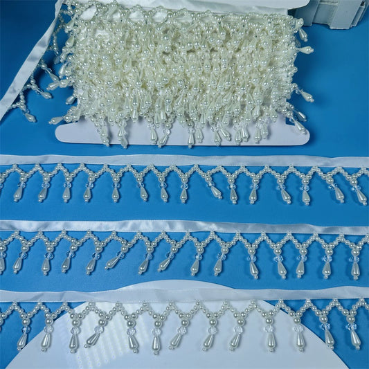 Accesorios de encaje de perlas de alta calidad de 3689 cm de ancho, con flecos, hechos a mano, para decoración de ropa, pequeños accesorios fragantes, falda DIY