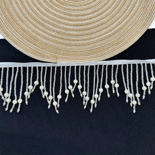 3698 Nuevo, encaje con flecos de perlas hecho a mano, para ropa, textiles para el hogar, cortina DIY, lámpara de escritorio, encaje decorativo
