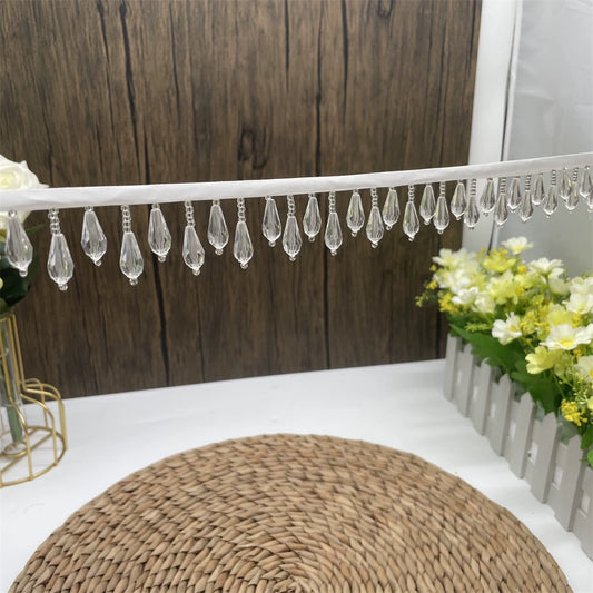3694 Nuevo producto de 10 cm de ancho, cortina industrial pesada con borlas, accesorios de encaje con cuentas, cortinas hechas a mano DIY, ropa de boda, lámpara de escritorio, decoración