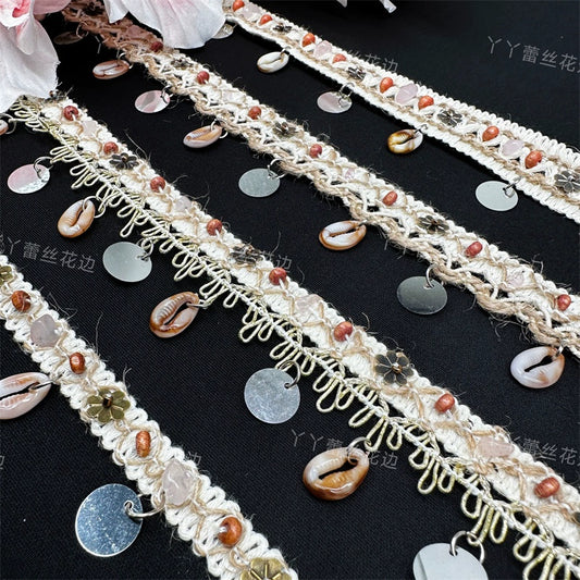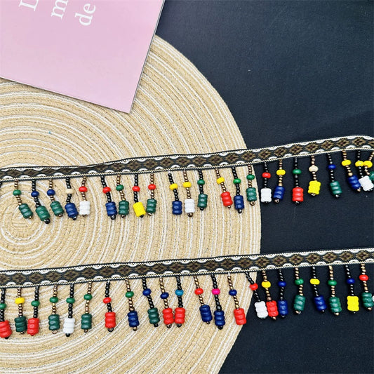 3715 Cuentas hechas a mano, cinta de encaje de estilo étnico, accesorios de ropa de bricolaje, accesorios, decoración de dobladillo de ropa, cinturón de cuentas con flecos