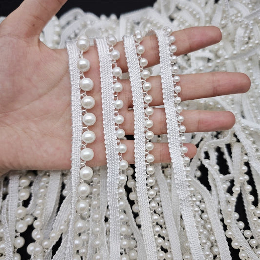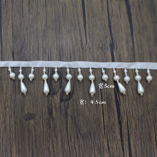 3717 Cuentas de uñas hechas a mano, perlas de imitación con flecos, cuentas colgantes, accesorios de encaje para ropa DIY, puños de cinturón de perlas blancas, accesorios decorativos