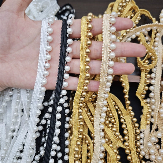 3714 Vestido de novia cheongsam con cuentas hecho a mano, encaje de perlas, accesorios de decoración de ropa DIY, cintas con cuentas Hanfu
