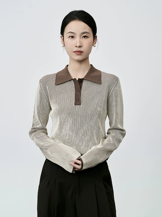 Suéter de punto tipo polo pequeño francés de alta costura CAREMIND con solapa en el hombro delantero en contraste