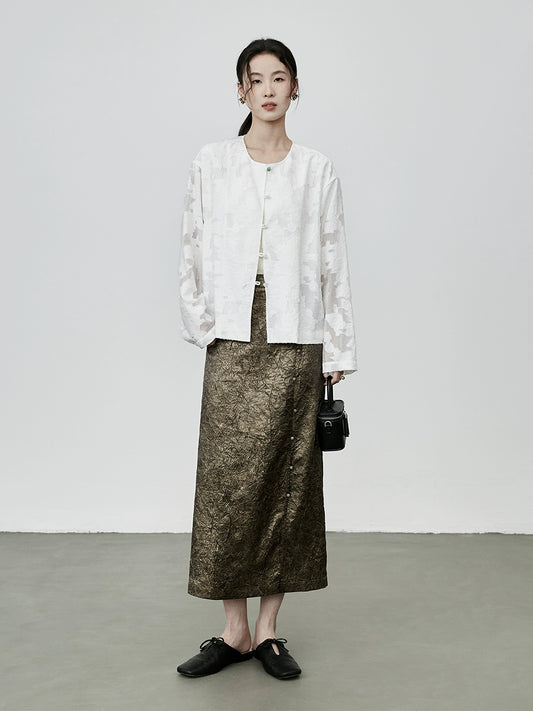 CAREMIND Falda con diseño artesanal de color frito hecha a mano con textura de jacquard Falda con cintura elástica