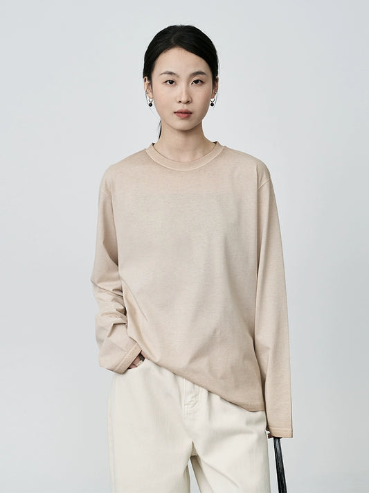 Camiseta de manga larga encerada suave y cómoda con diseño de teñido colgante gris de CAREMIND con interior sencillo