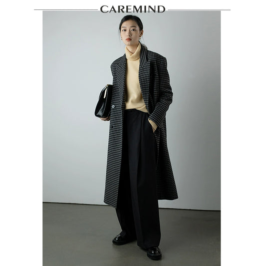 CAREMIND [El sueño de Fausto] Abrigo de lana a cuadros original para mujer, nuevo abrigo largo de otoño e invierno