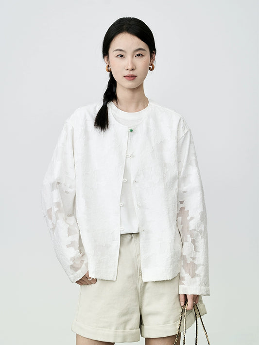 Chaqueta de traje con textura de calidad para mujer, diseño chino, color albaricoque blanco, de CAREMIND