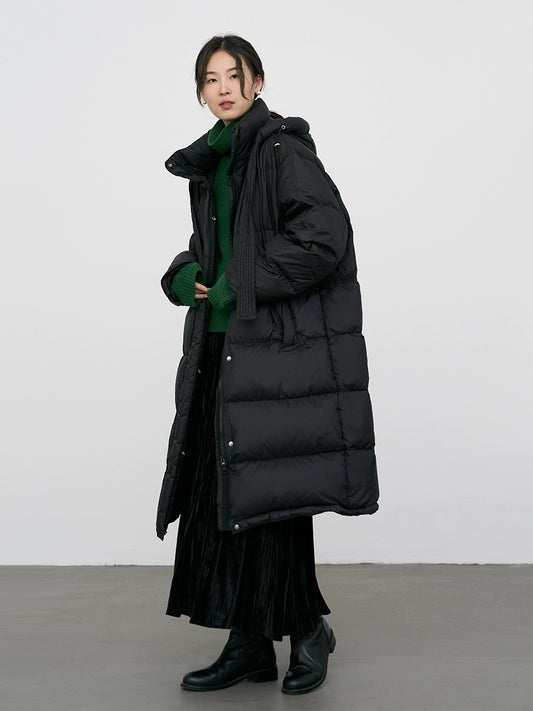 CAREMIND Chaqueta de plumón con capucha hasta la rodilla blanca para mujer, chaqueta térmica de plumón 90 %
