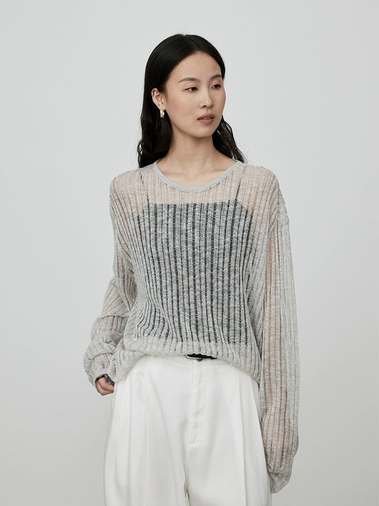 CAREMIND blusa de punto hueca de tres colores con perspectiva de tiras en el hoyo exterior con top de manga larga para mujer para desplazamientos de otoño