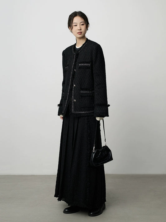 Chaqueta negra gruesa y fragante con temperamento de CAREMIND, textura industrial pesada, suelta y elegante, para mujer