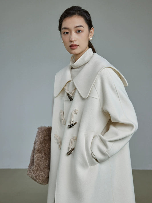 [Oferta especial por tiempo limitado] Abrigo de lana de doble cara mediano y largo hecho a mano Abrigo de lana para viajeros con hebilla de cuerno original