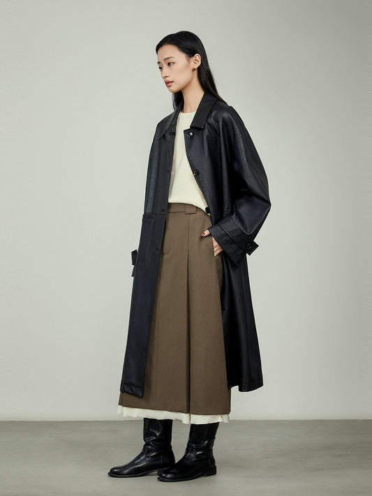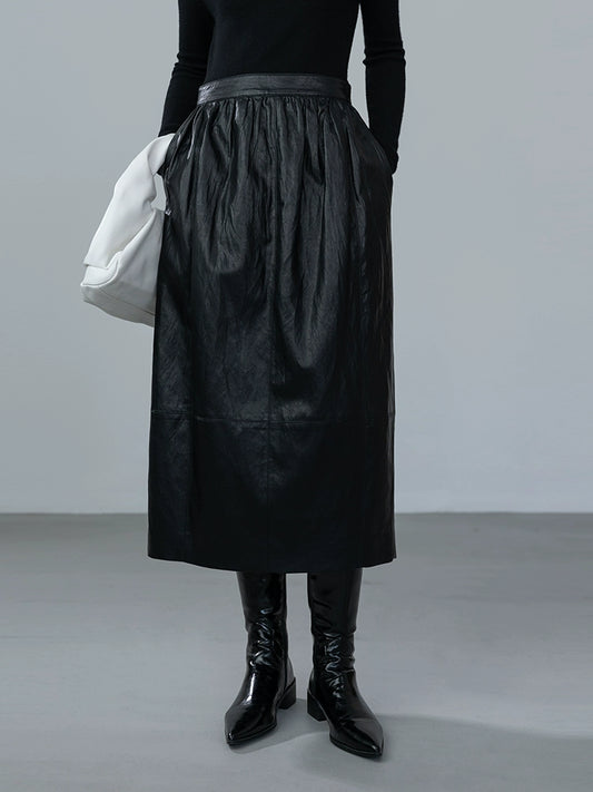 [Oferta especial por tiempo limitado] CAREMIND otoño nueva falda de cuero café suave retro falda de cuero PU mediana y larga