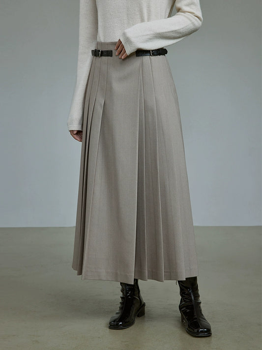 [Oferta especial por tiempo limitado] Falda plisada de cintura alta con diseño elegante, falda larga que cubre la cadera con personaje A para mujer
