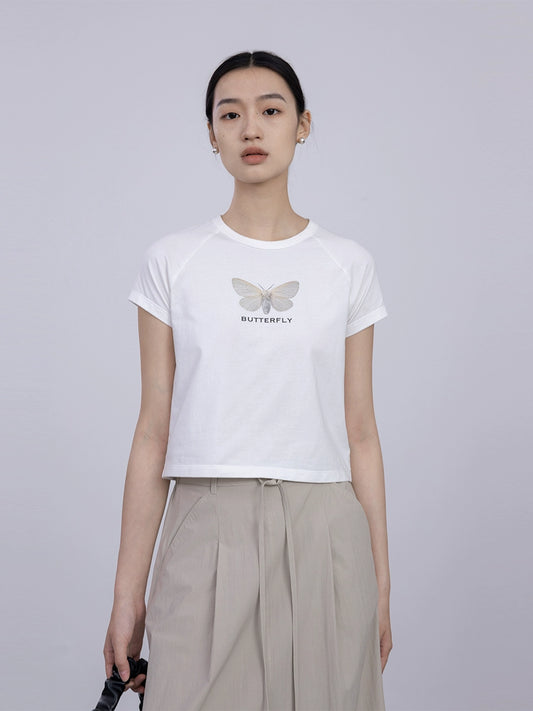 [Oferta especial por tiempo limitado] CAREMIND Camiseta ajustada de cuello redondo de manga corta para mujer, en blanco y negro, sencilla, transpirable, corta para mujer