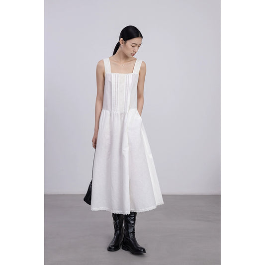 [Oferta por tiempo limitado] Vestido de encaje literario romántico blanco Nuevo vestido de jacquard con escote cuadrado Vestido mediano y largo