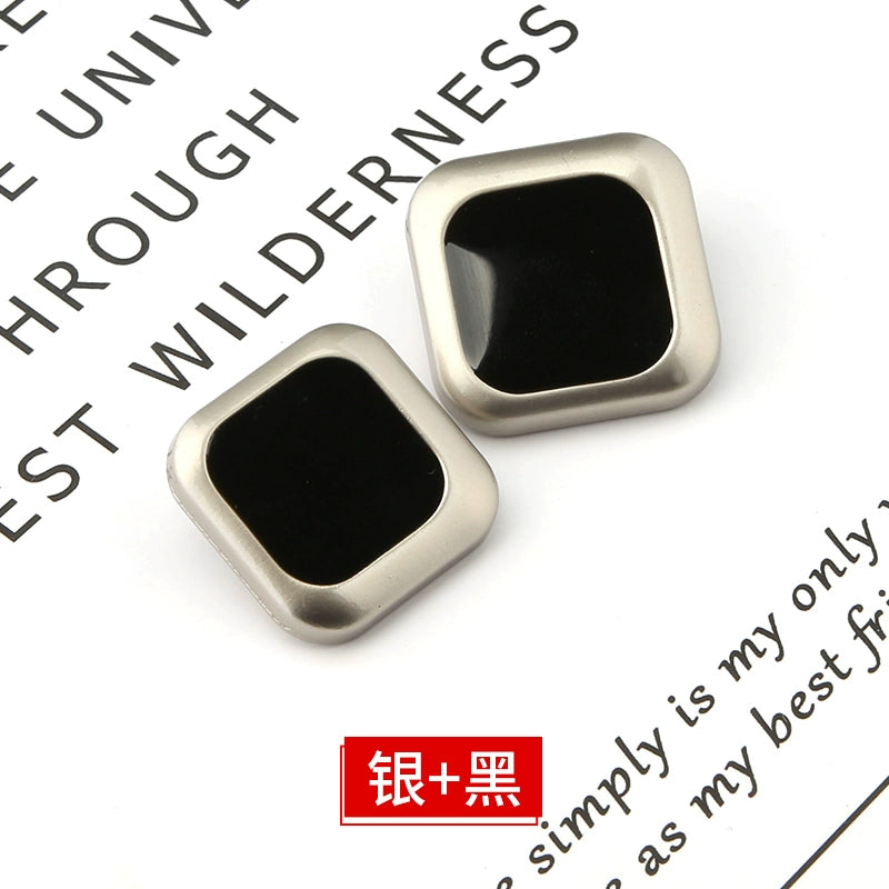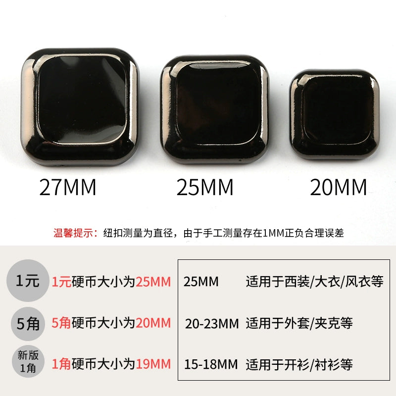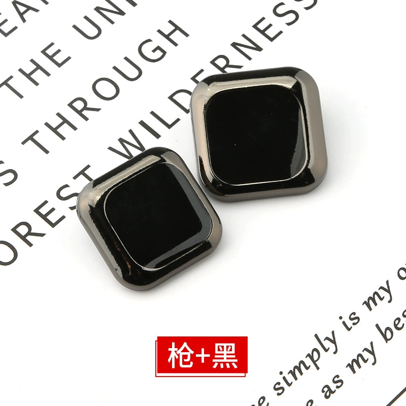 3423★ Botones cuadrados de metal para ropa, chaqueta, gabardina, botones negros versátiles, botones para traje, suéter, accesorios decorativos