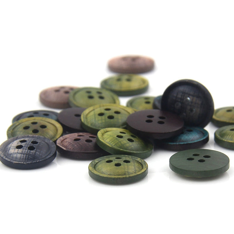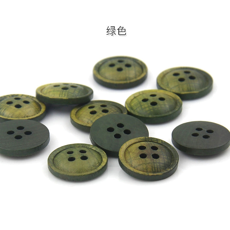 3466★ Botones de madera de colores Botones pintados con impresión en color epoxi Botones de traje Botones de camisa con patrón de madera Botones de camisa de cuatro ojales