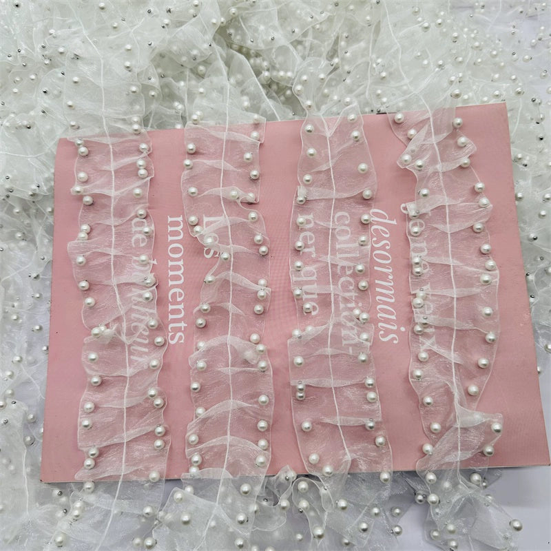 3661★ Eugen hilo plisado perla encaje accesorios de cuentas cinturón de encaje decorativo material ropa boda tocados ropa de bebé encaje