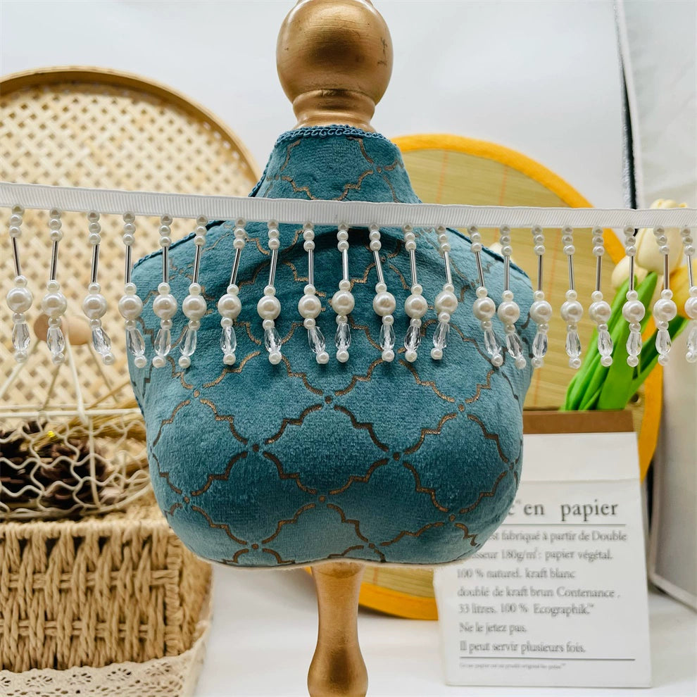 3698 Nuevo, encaje con flecos de perlas hecho a mano, para ropa, textiles para el hogar, cortina DIY, lámpara de escritorio, encaje decorativo