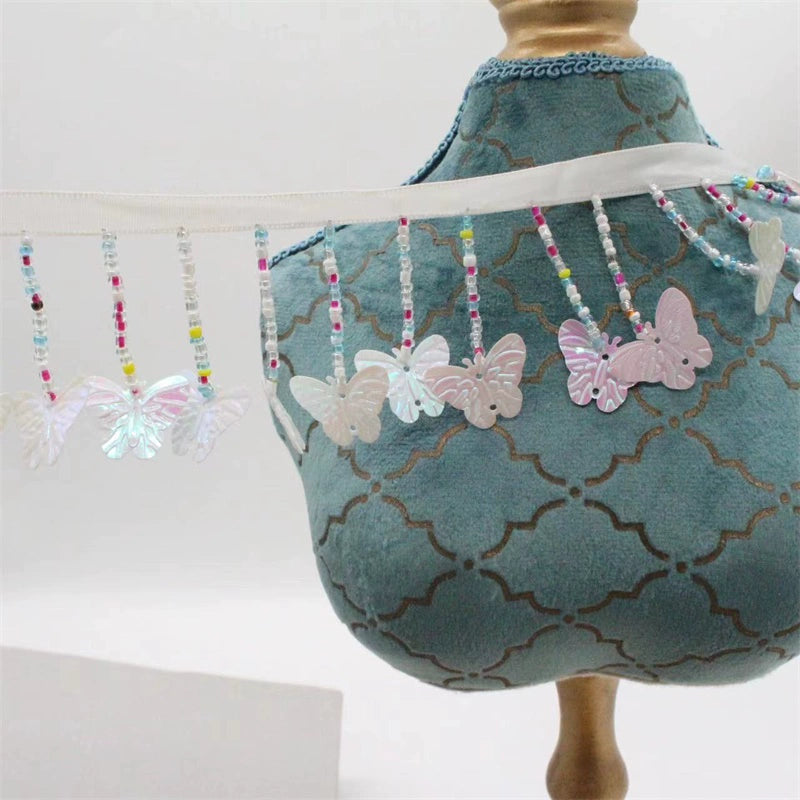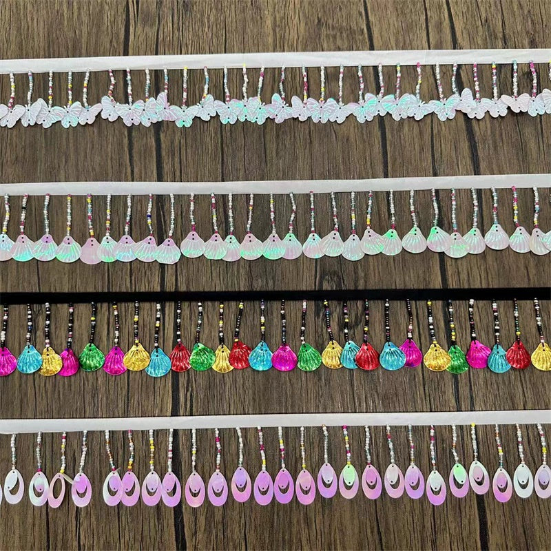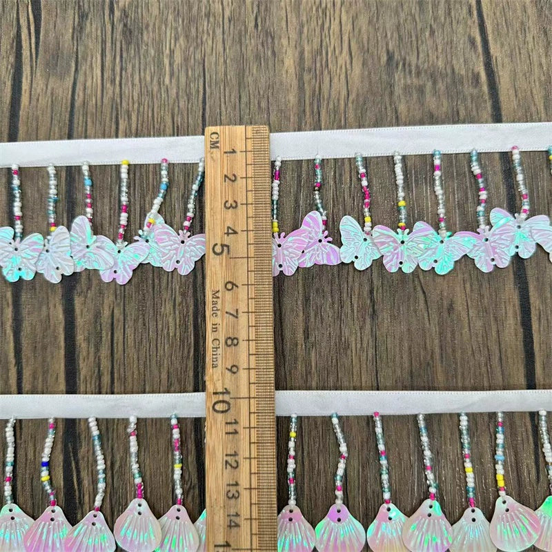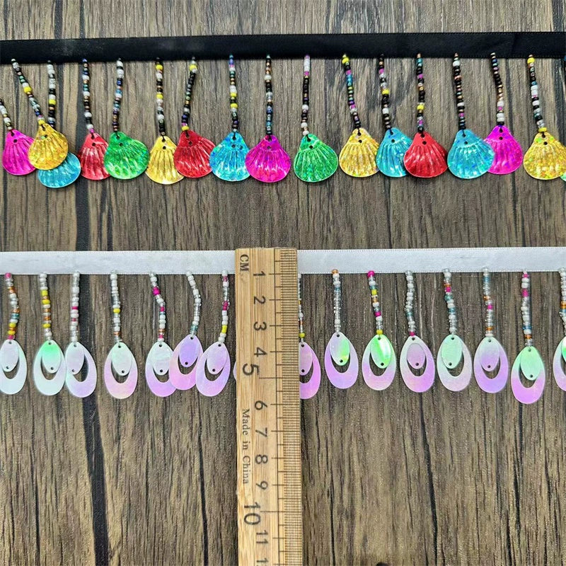 3701 Exportación, accesorios de encaje con cuentas y flecos de lentejuelas, tela para cortinas, bricolaje, decoración de encaje con cuentas hecha a mano