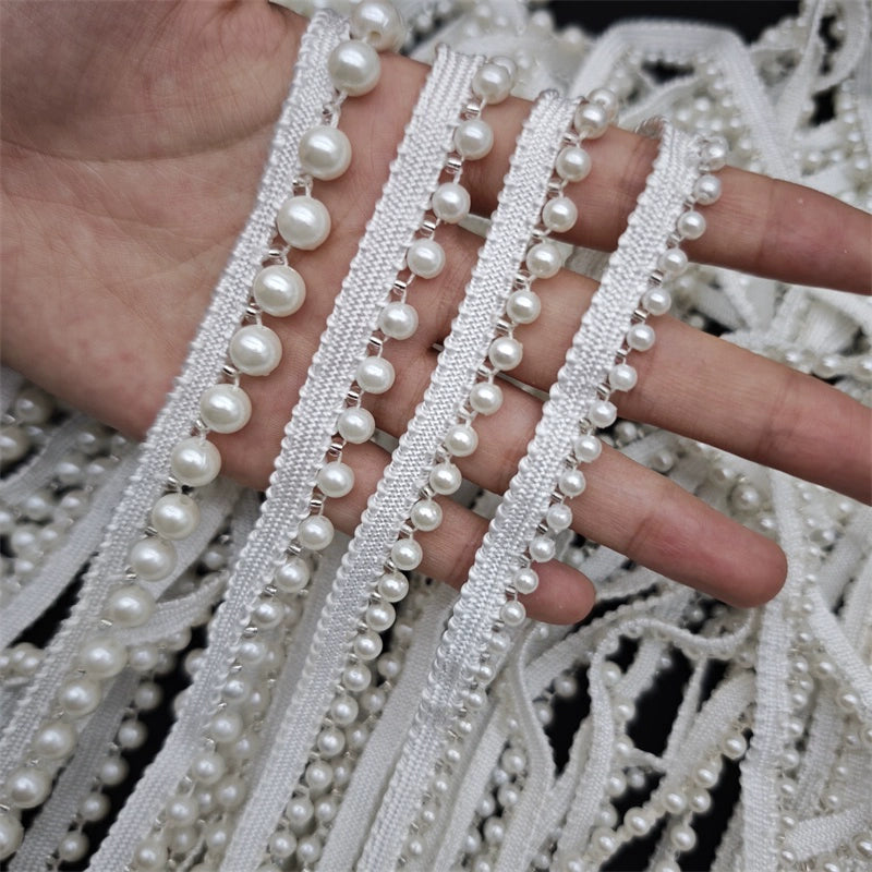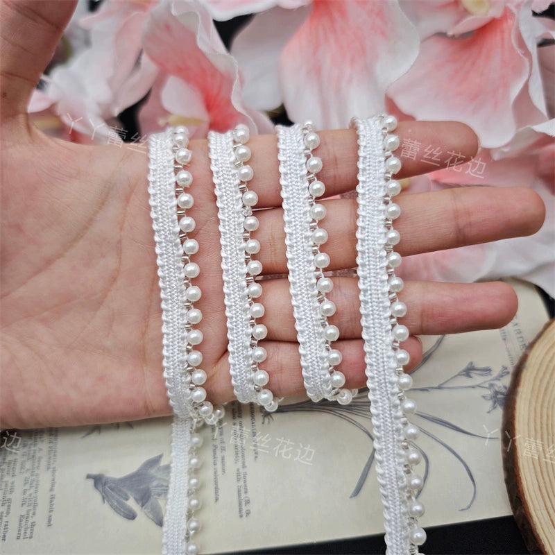 3704 Cheongsam Hanfu de estilo chino con encaje de perlas de imitación enhebrado a mano en blanco, accesorios decorativos para sombreros y escotes.