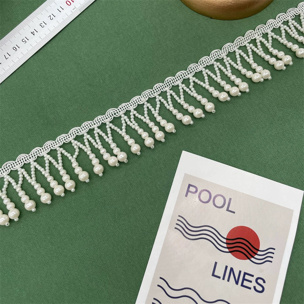 3717 Cuentas de uñas hechas a mano, perlas de imitación con flecos, cuentas colgantes, accesorios de encaje para ropa DIY, puños de cinturón de perlas blancas, accesorios decorativos