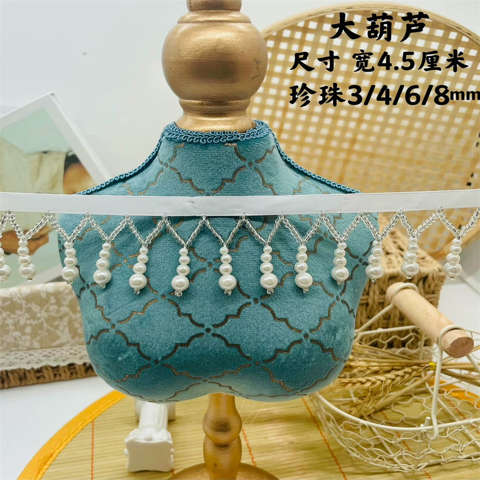 3727 Una variedad de cuentas, encaje con flecos, accesorios colgantes de calabaza de perla Hanfu, accesorios de ropa de falda, correas de cortina de cuentas de bricolaje