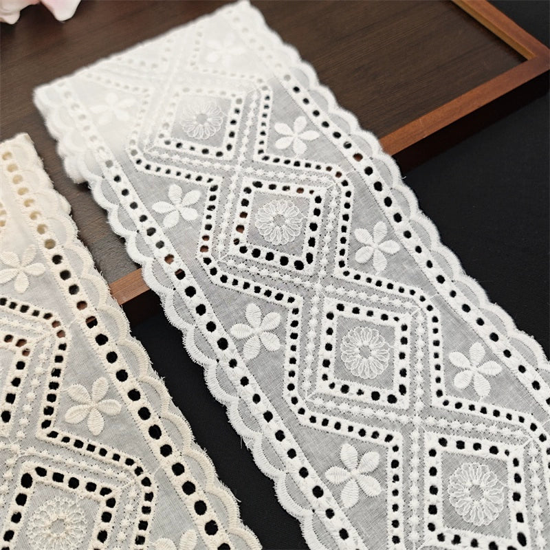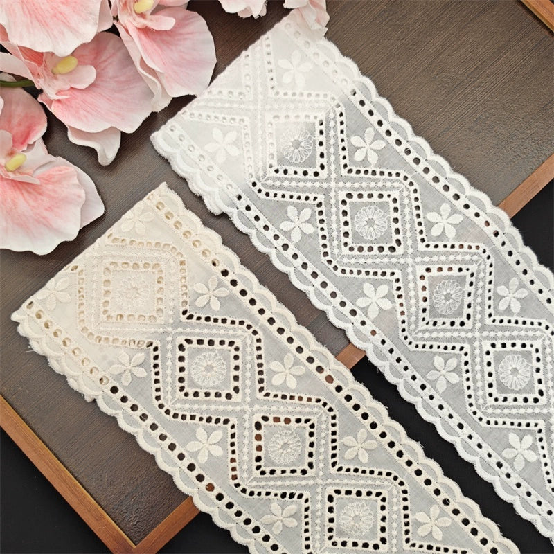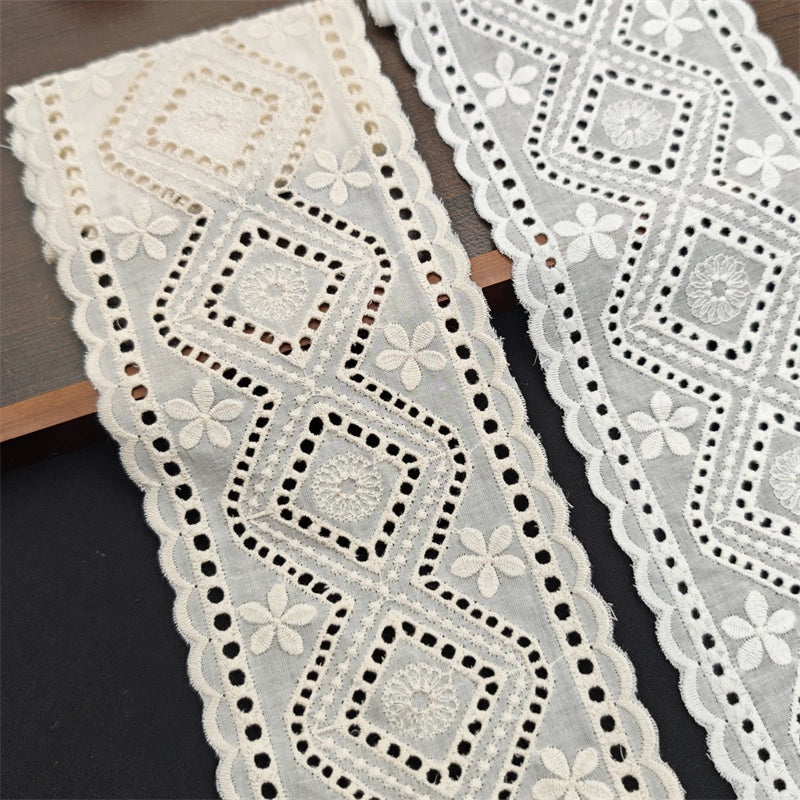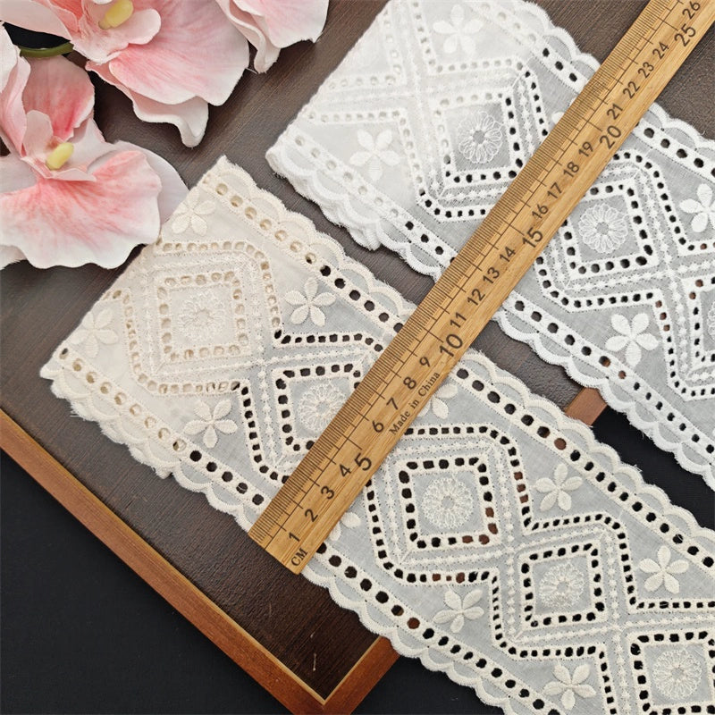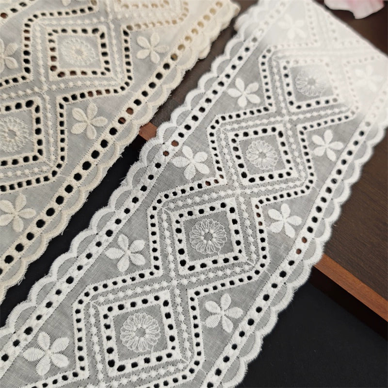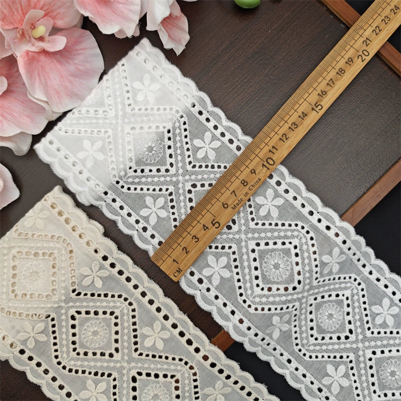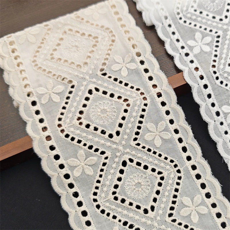 Tela vintage de algodón blanco albaricoque, con borde engrosado, bordado bilateral, 10,5 cm de ancho, hecha a mano, 3786