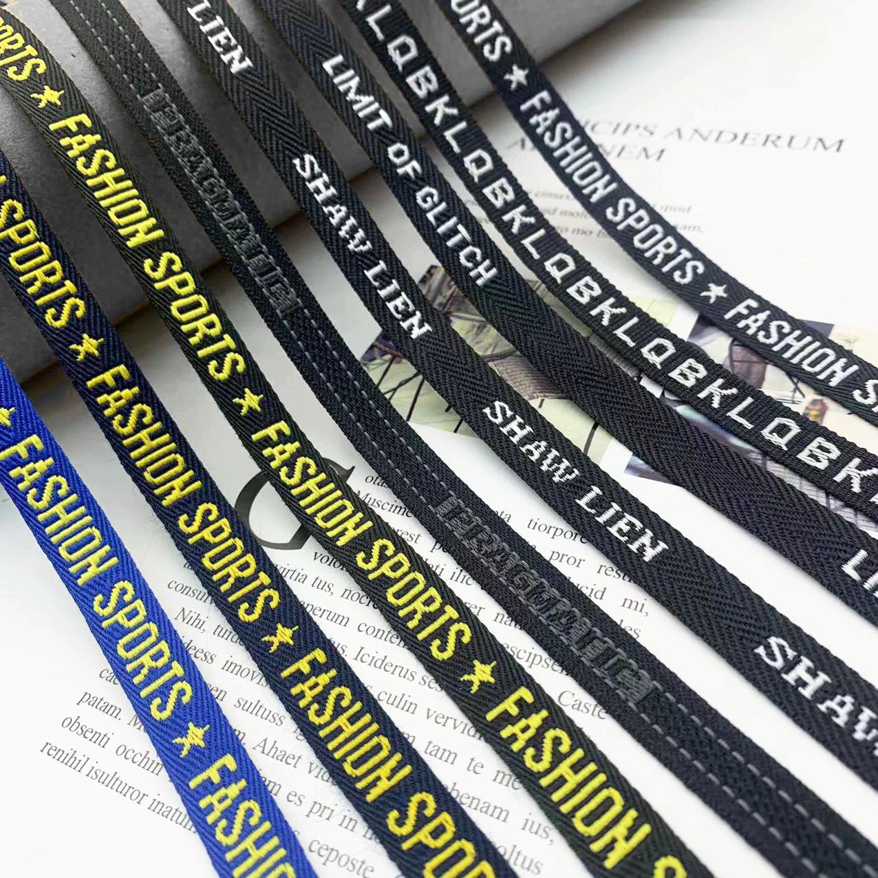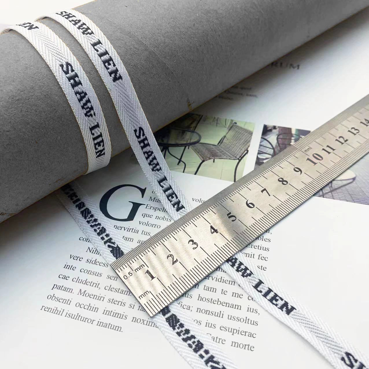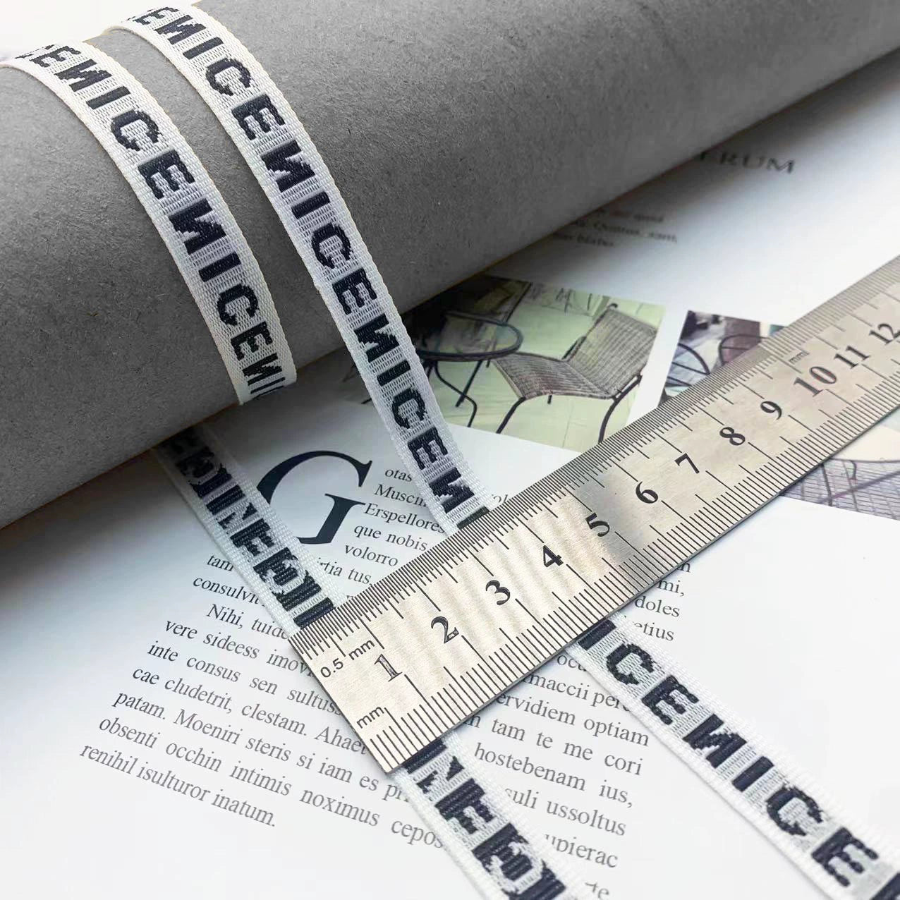 3852 Tira de prensado de borde de cinta jacquard con letras en blanco y negro de 1 cm, personalizada, para accesorios, ropa y textiles para el hogar