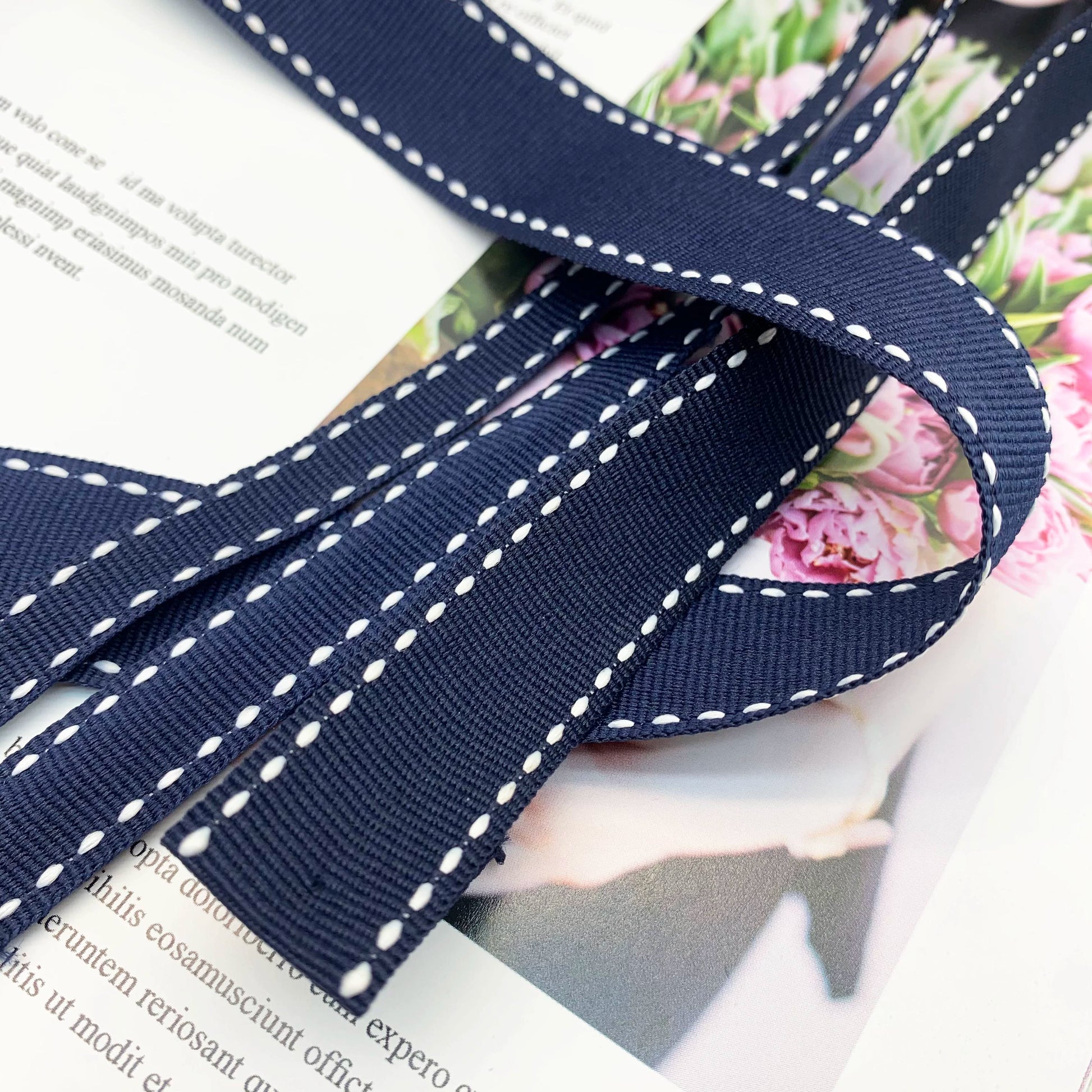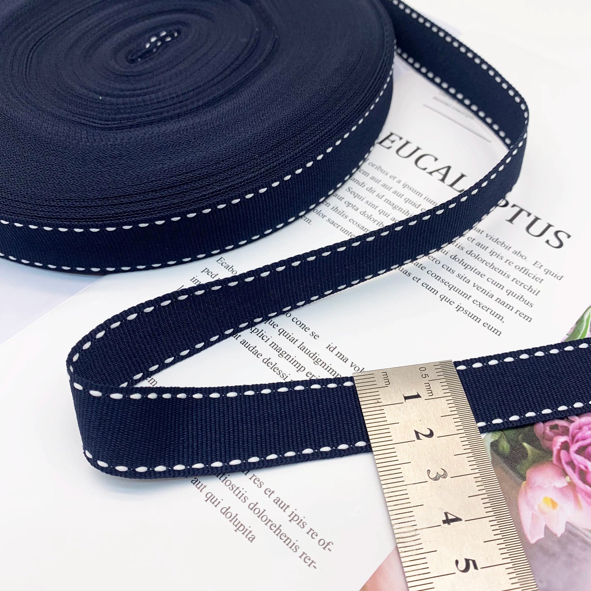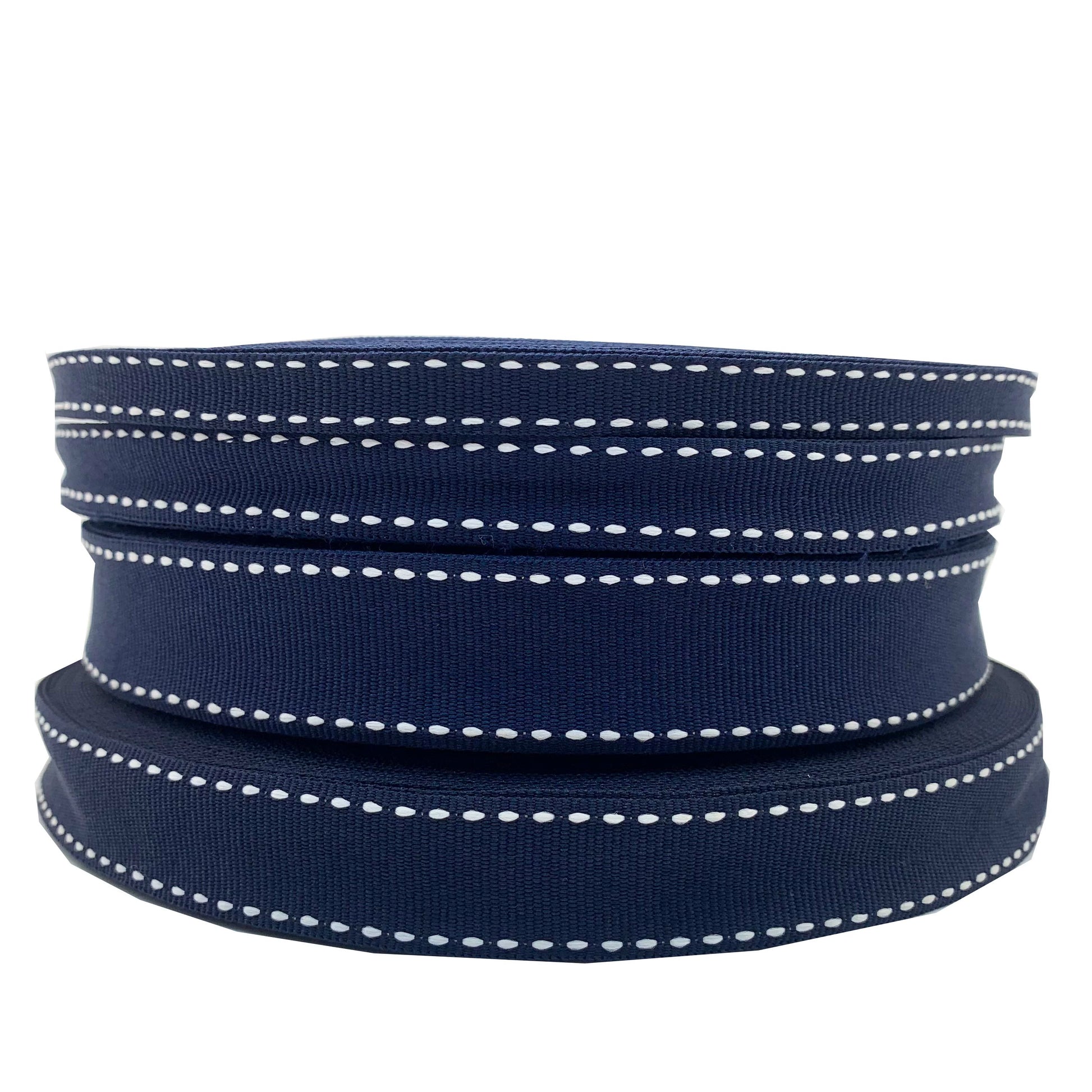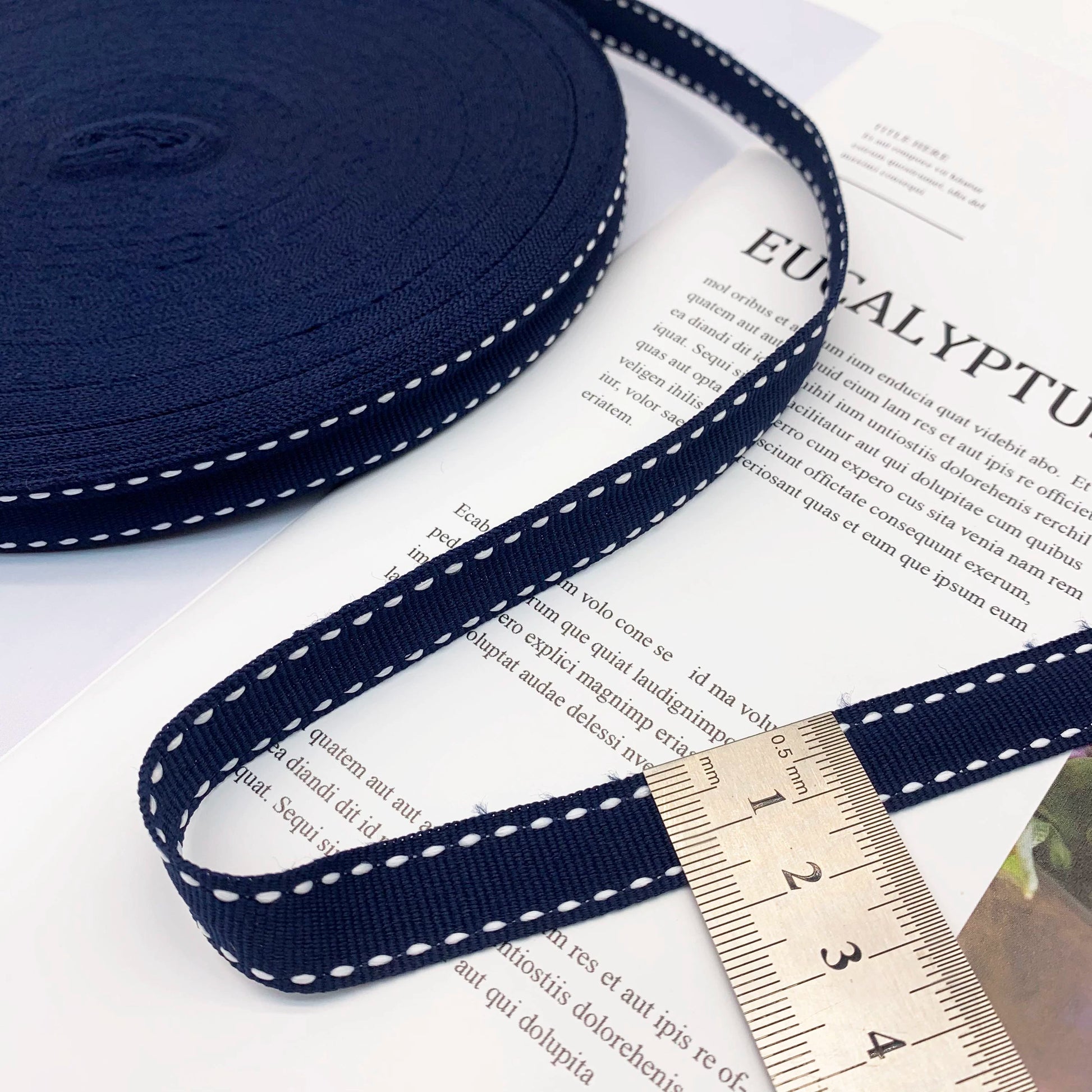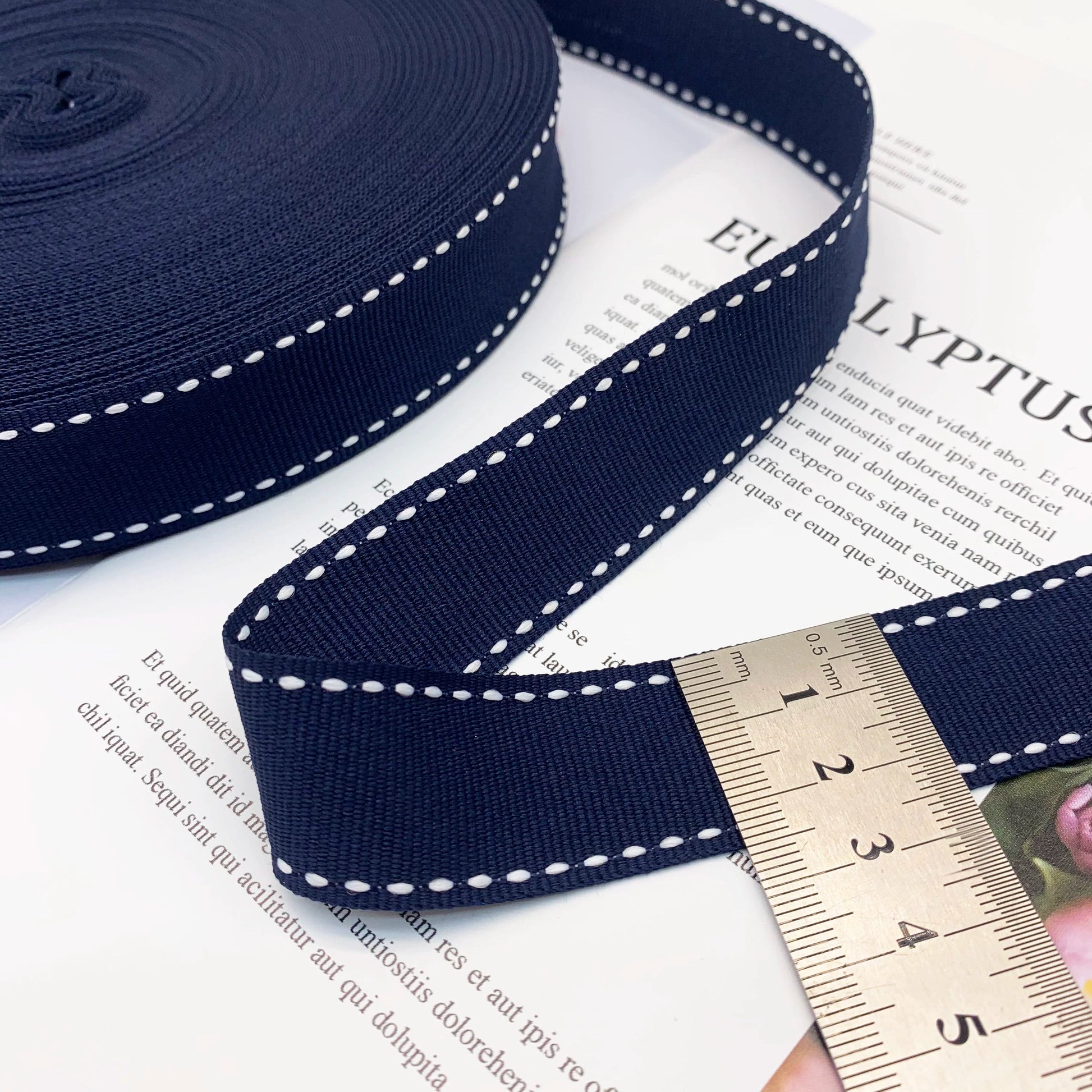 3858 Punto 0,7 cm-2,5 cm cinta jacquard azul marino cinta de punto de salto blanca ribete en el borde lateral tira de presión accesorios