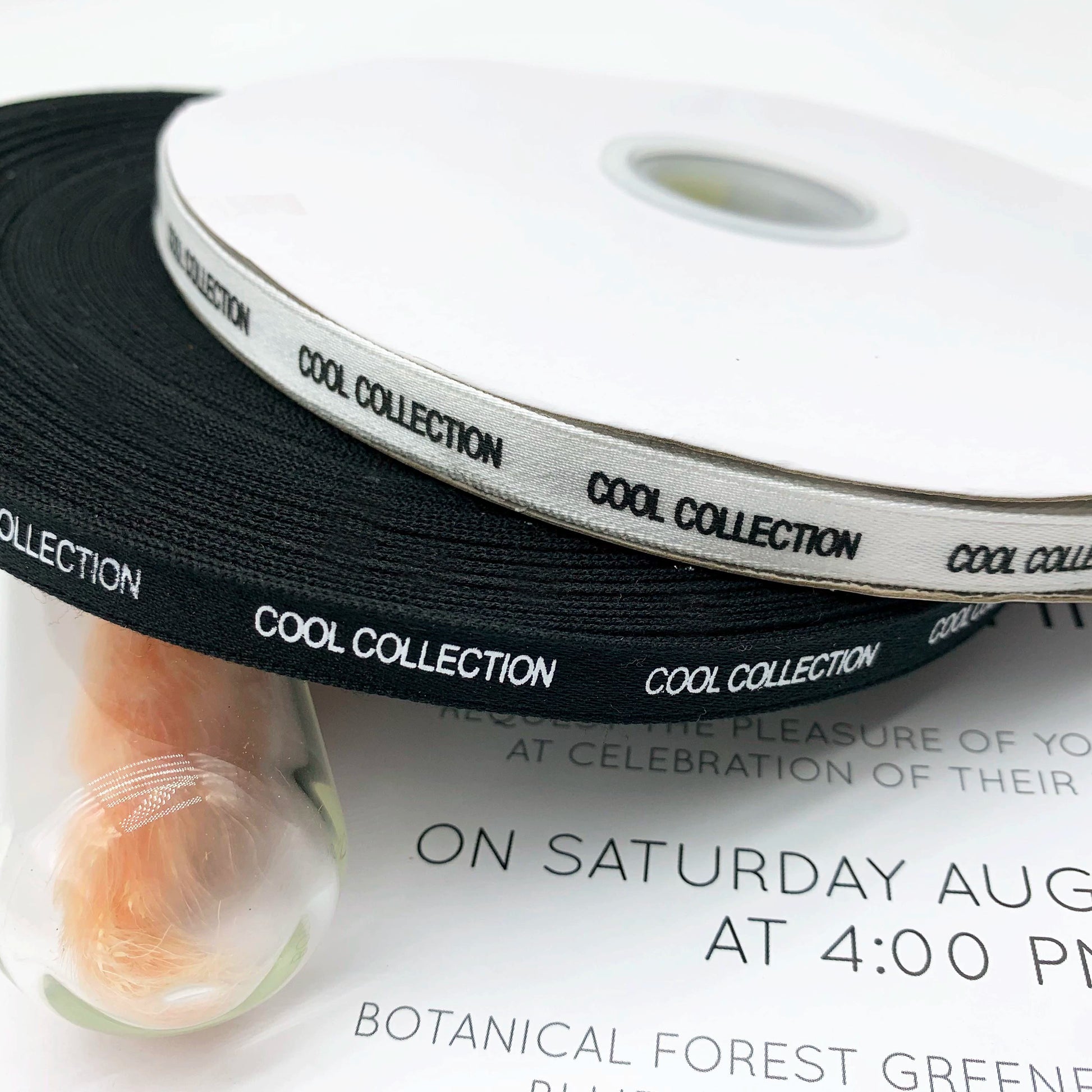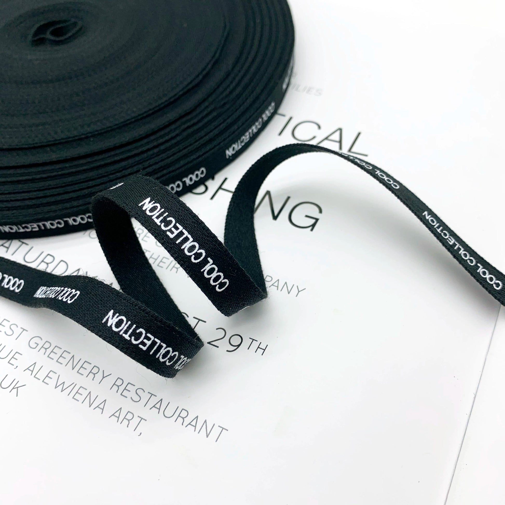 Tira de cinta con estampado de letras en blanco y negro de algodón de 1 cm, tira de ribete para el borde del escote trasero, tira de presión para accesorios, tira lateral para ropa