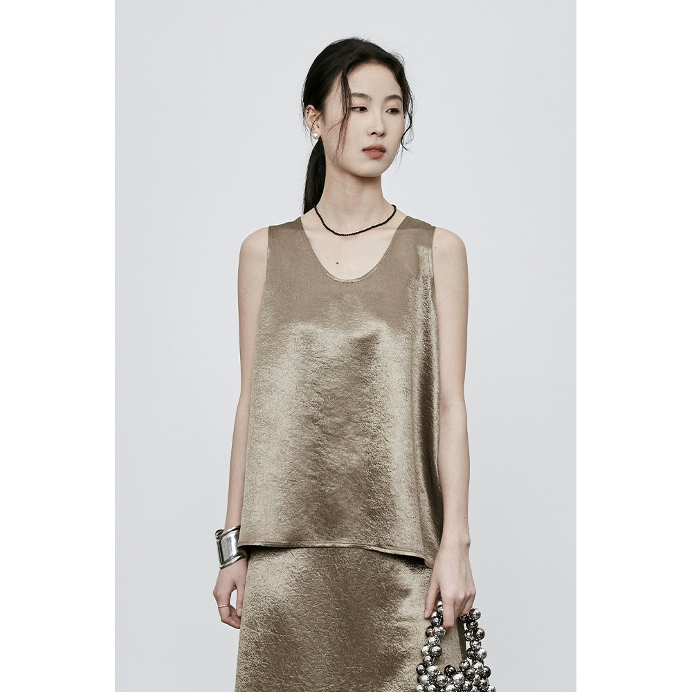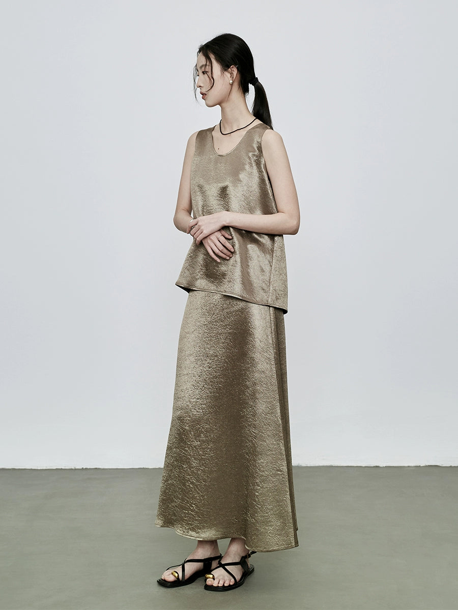 CAREMIND Traje de acetato con estampado oscuro Chaleco sin mangas Falda larga de cola de pez Conjunto de dos piezas para mujer