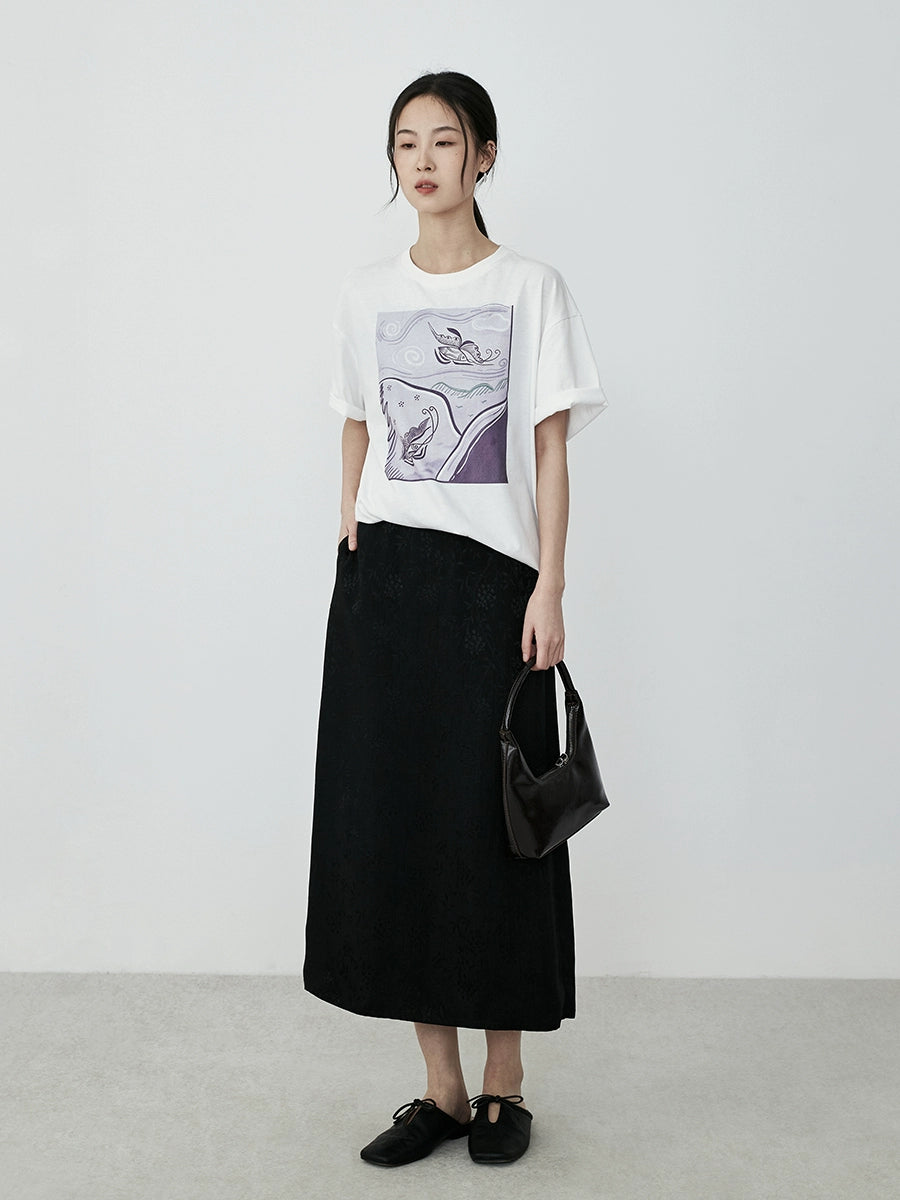 Falda de cintura alta de satén de acetato de CAREMIND para mujer, falda de un solo paso con estampado oscuro, ligera, de lujo, de verano, versátil, para industria pesada