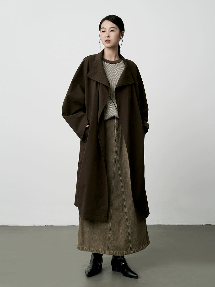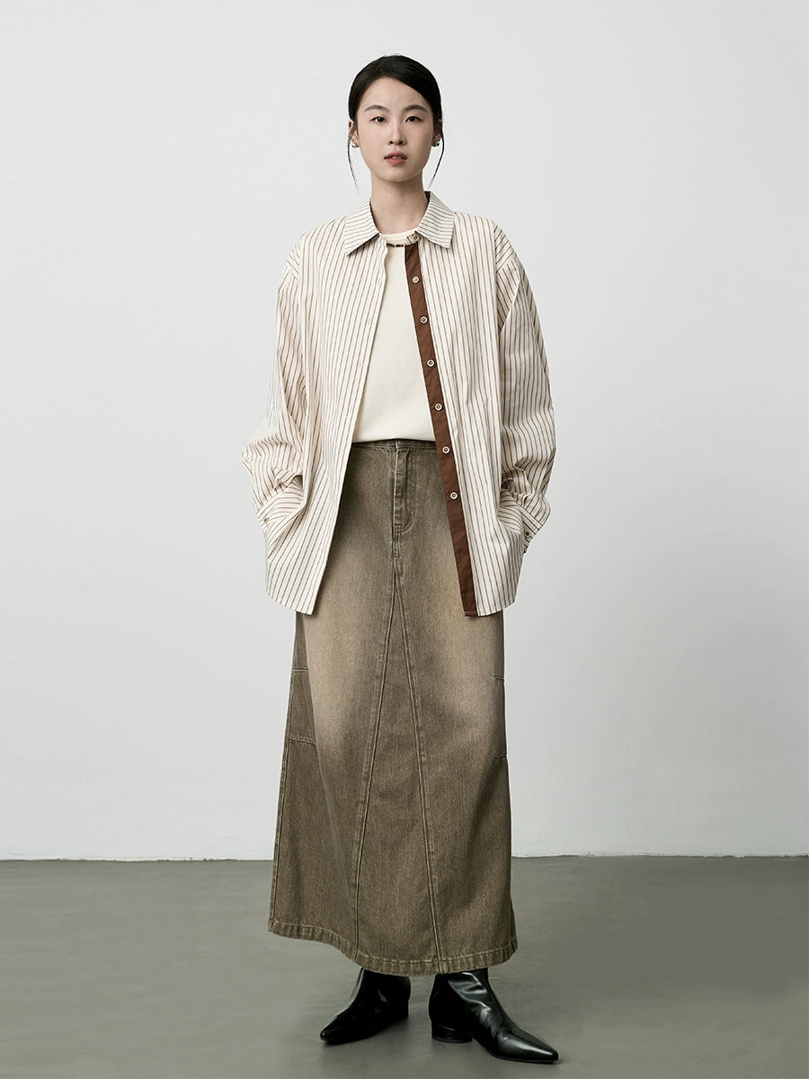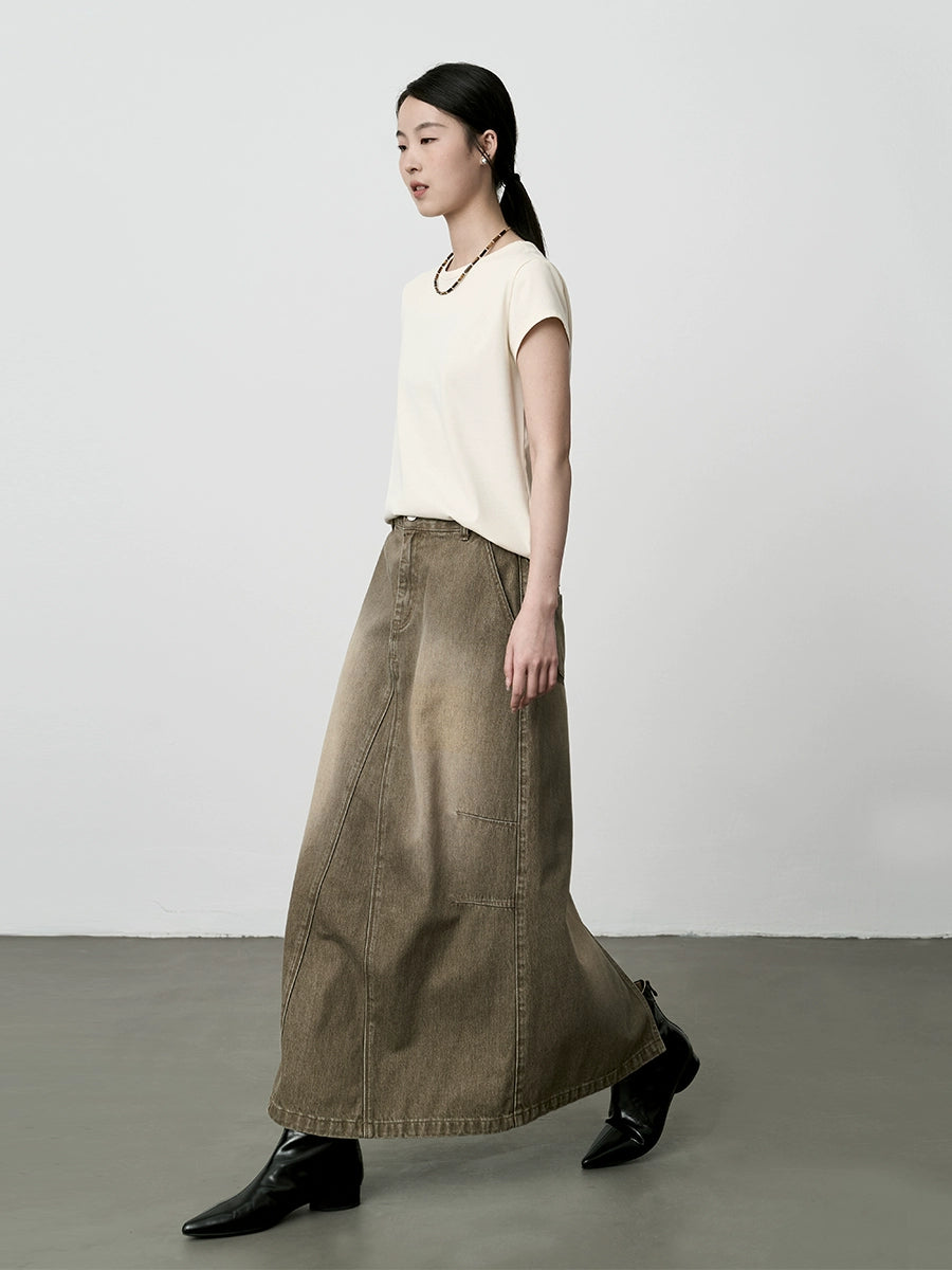 Falda vaquera antigua retro americana CAREMIND 2024, cintura alta, palabra A, falda larga de algodón con abertura