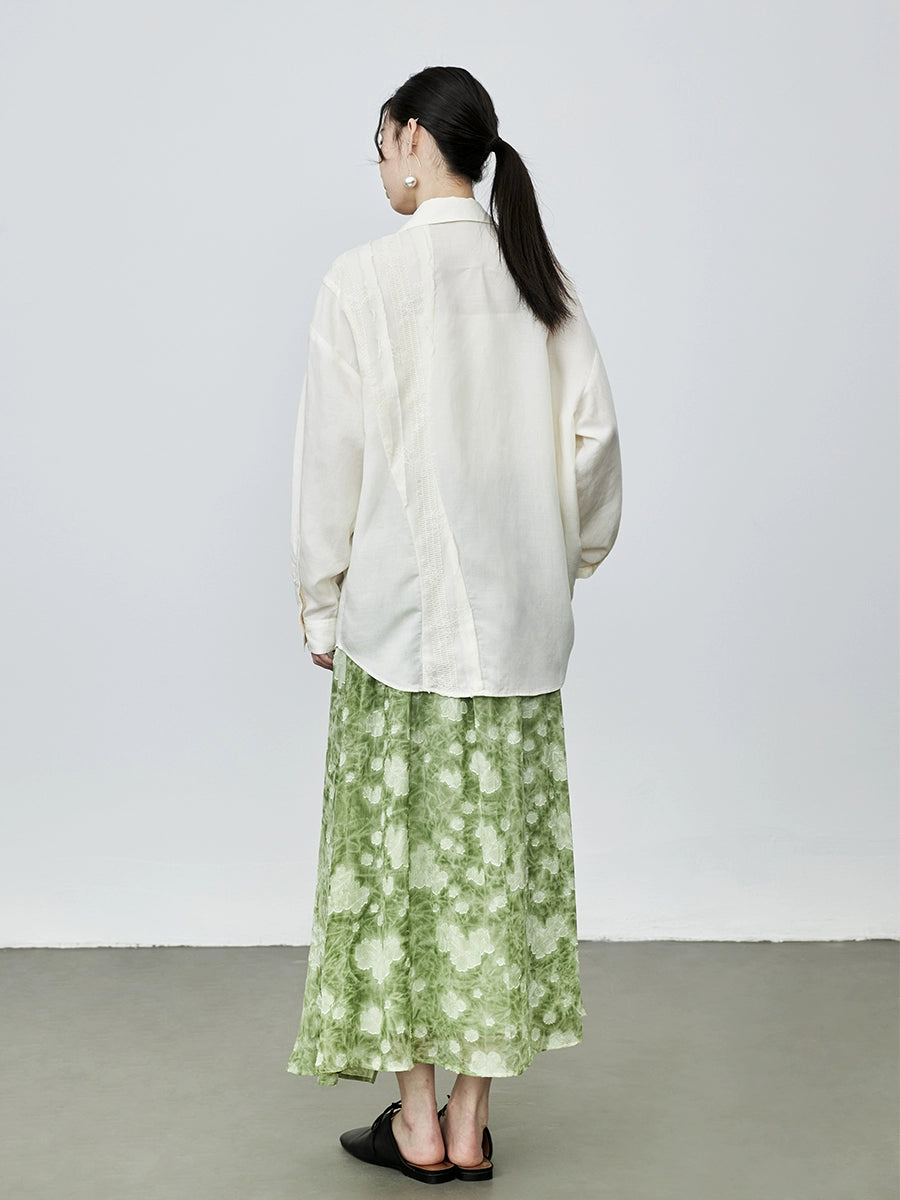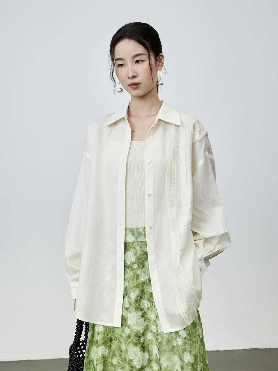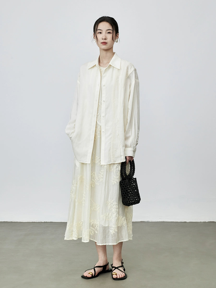 Camisa de tencel con protección solar color albaricoque de CAREMIND, chaqueta elegante con bordados, camisa holgada para ir al trabajo