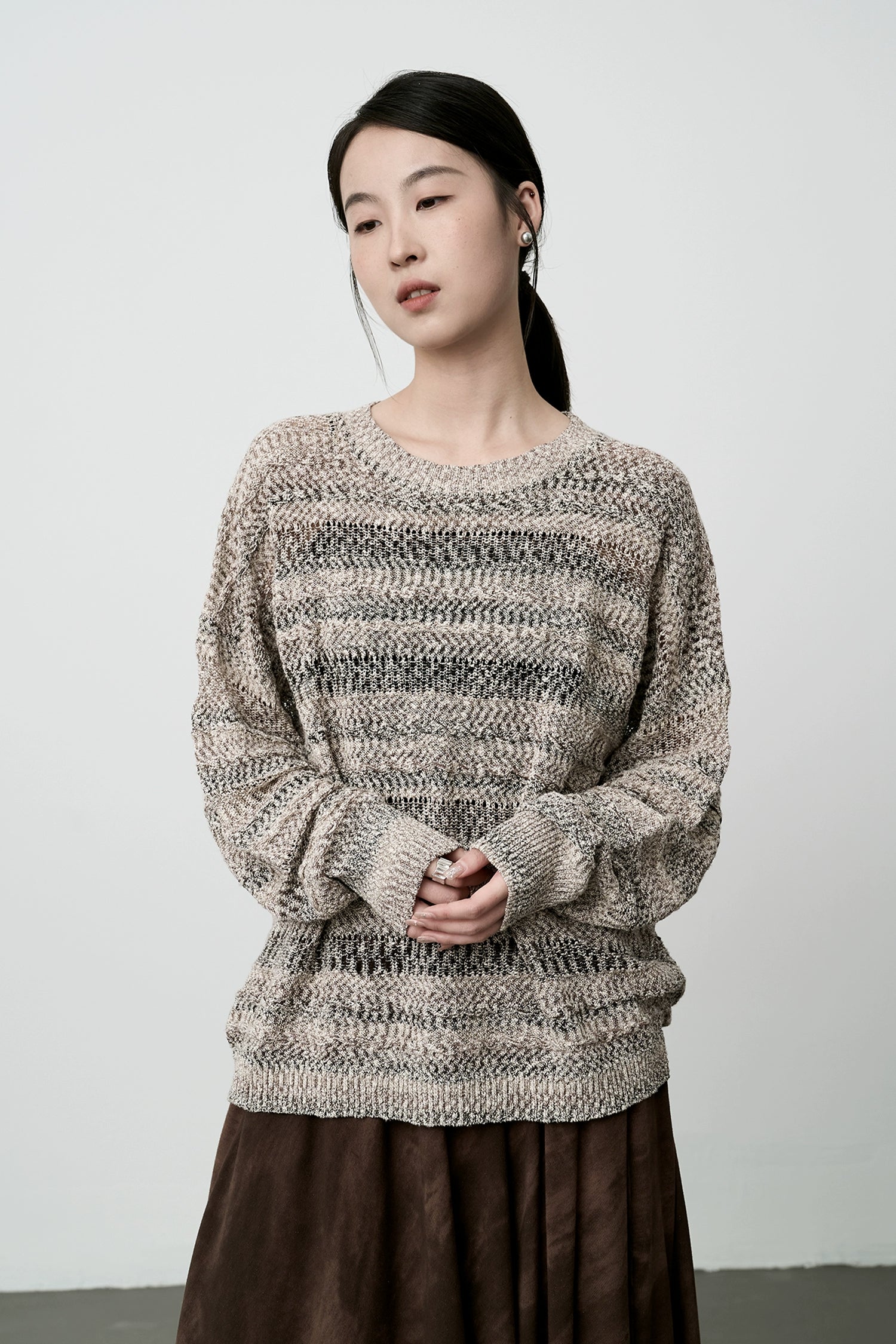 CAREMIND Abrigo holgado de manga larga de punto holgado de fibra de bambú para primavera y otoño